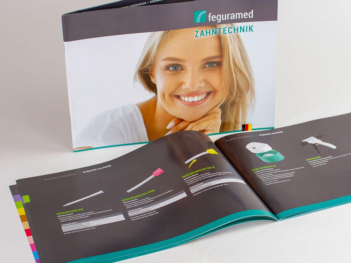 Seit beinahe zwei Jahrzehnten begleiten wir Feguramed bei der grafischen Gestaltung ihrer Produkte und ihres Katalogs. Der aktuelle Produktkatalog entstand in weiten Teilen aus einer Datenbank und nur die wichtigsten Elemente wurden manuell bearbeitet.