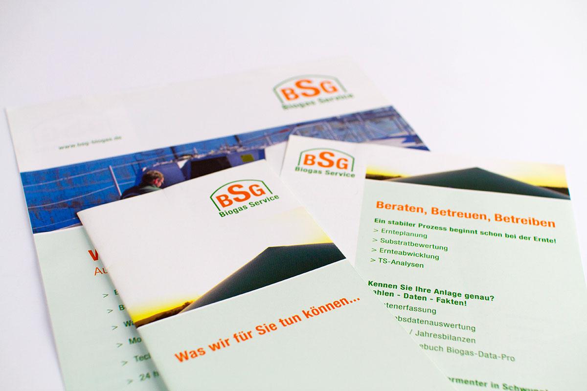 BSG Biogas begleiten wir praktisch seit der Unternehmensgründung. Vom Logo über die Geschäftsausstattung bis hin zum Messestand und zur Fahrzeugbeschriftung stammt die komplette Grafik aus unserer Feder.