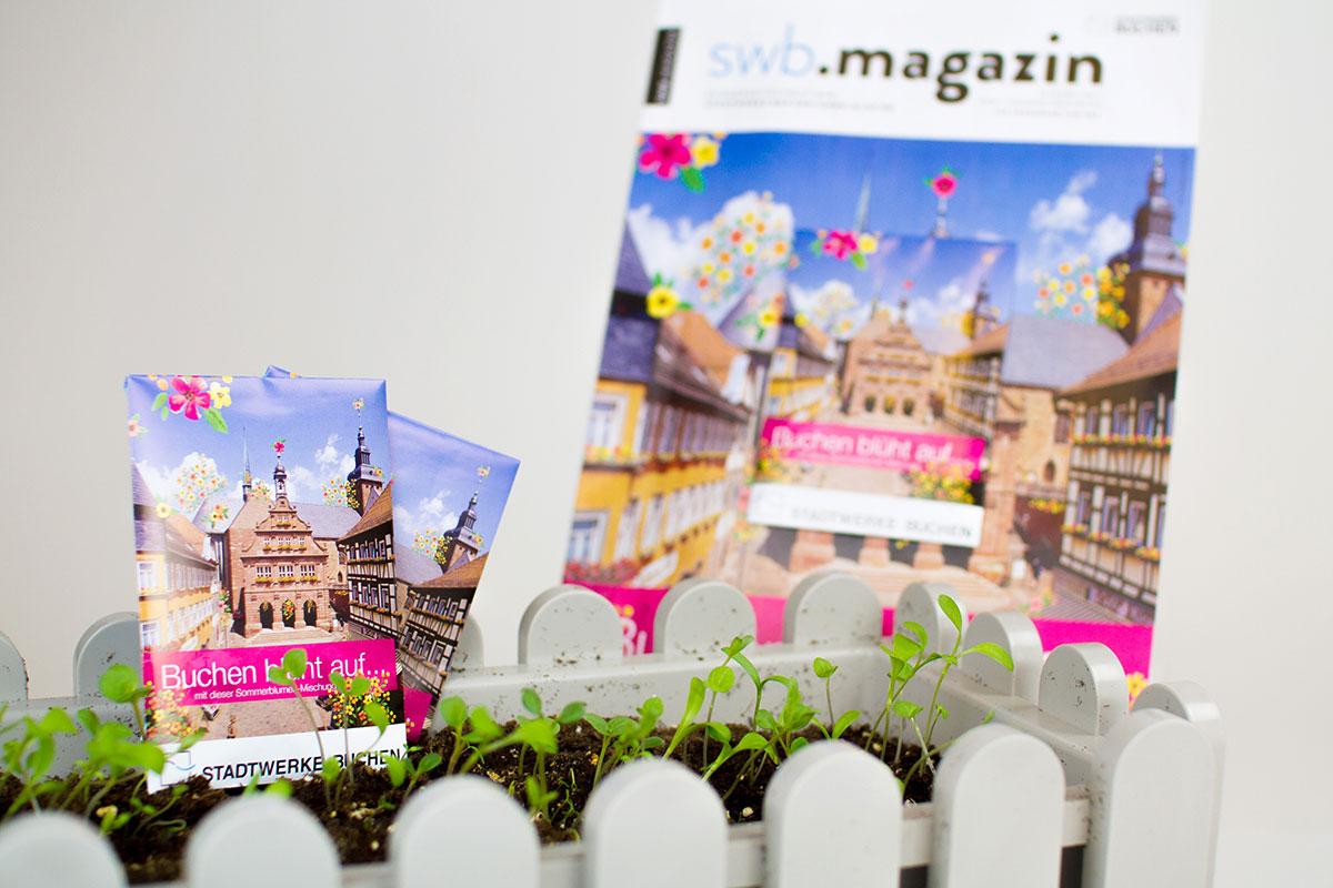 Eine besondere Überraschung gab es im Frühjahr 2017 für die Kunden der Stadtwerke Buchen. Dem vierteljährlich erscheinenden SWB-Magazin lag ein Samentütchen mit einer Blumenmischung bei.