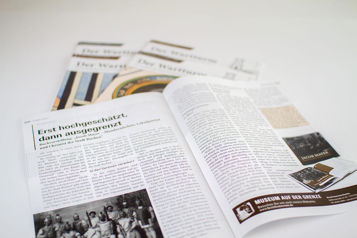 Das quartalsweise erscheinende Magazin "Der Wartturm" sind die Heimatblätter des Vereins Bezirksmusem und dokumentieren die Arbeit des Vereins und enthalten die Chronik der Stadt Buchen.