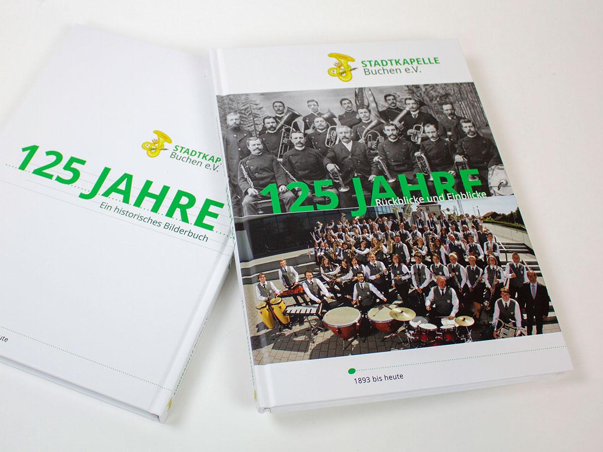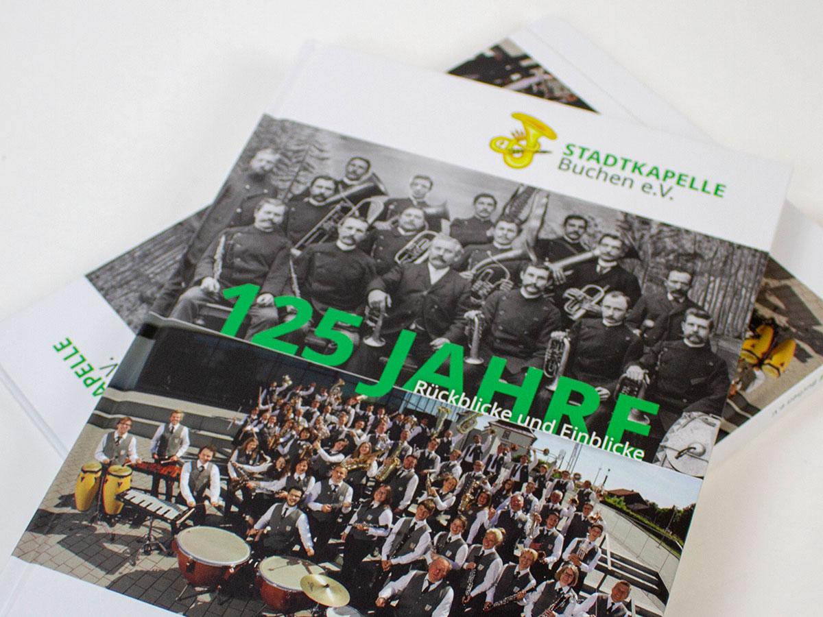 Zum 125. Geburtstag hatte sich der Förderverein der Stadtkapelle etwas ganz Besonderes ausgedacht: ein Bilderbuch mit Bildern aus 125 Jahren Stadtkapellen-Geschichte. So entstand ein Hardcover-Buch mit 140 Seiten und jeder Menge Bilder rund um die Arbeit der Stadtkapelle.