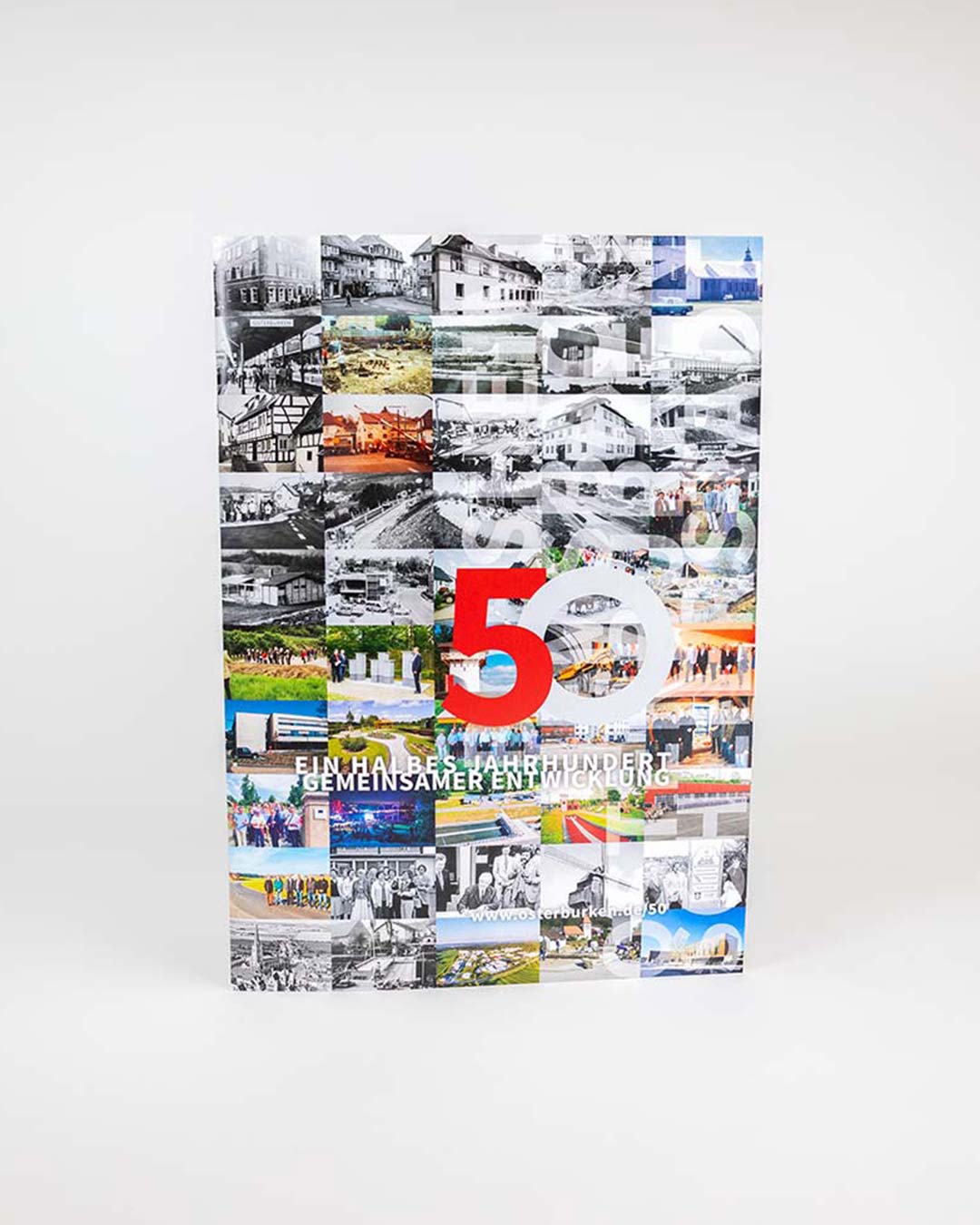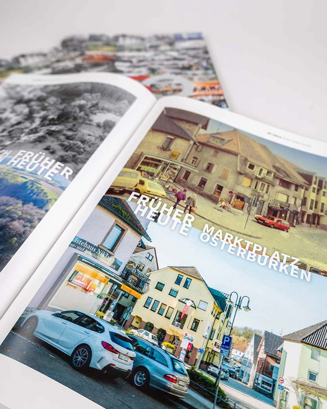 Für die Stadt Osterburken durften wir zum Jubiläum nicht nur Bierdeckel und Bauzaunbanner gestalten, sondern auch das Jubiläumsheft, in dem die Geschichte und Entwicklung der Stadt mit ihren Stadtteilen aufgezeigt wird.