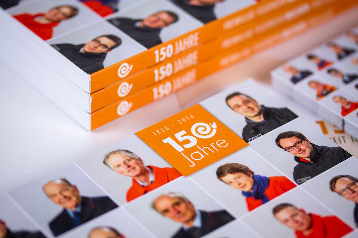 2016 begleiteten wir die Jubiläumsfeierlichkeiten zum 150. Geburtstag der Feuerwehr. Von Einladungsflyern über die Ausstattung des Festakts bis hin zur Chronik der 150 Jahre.