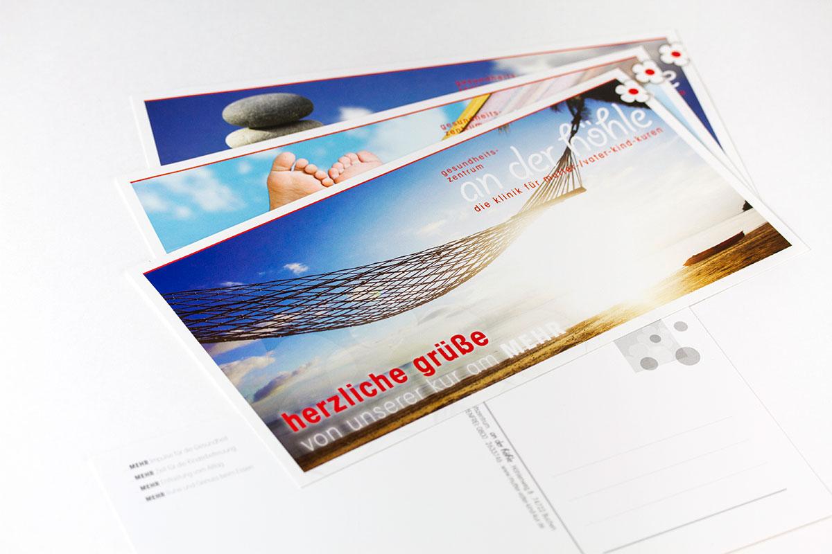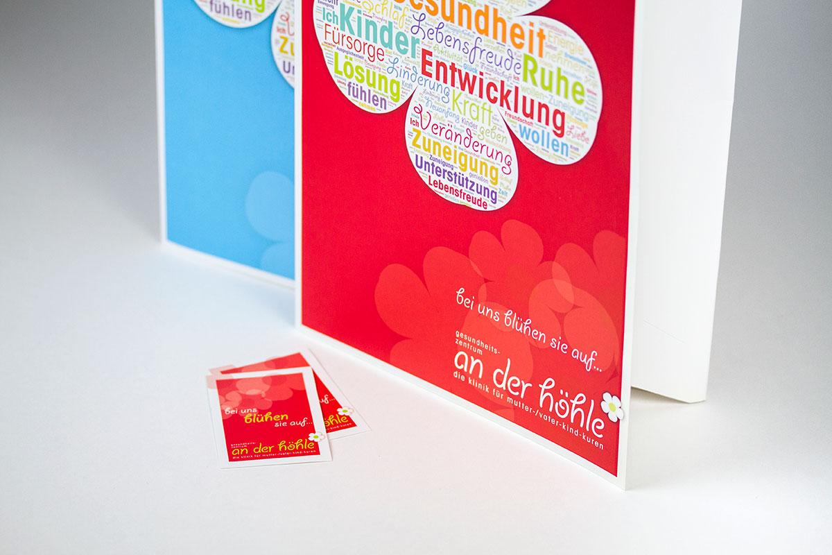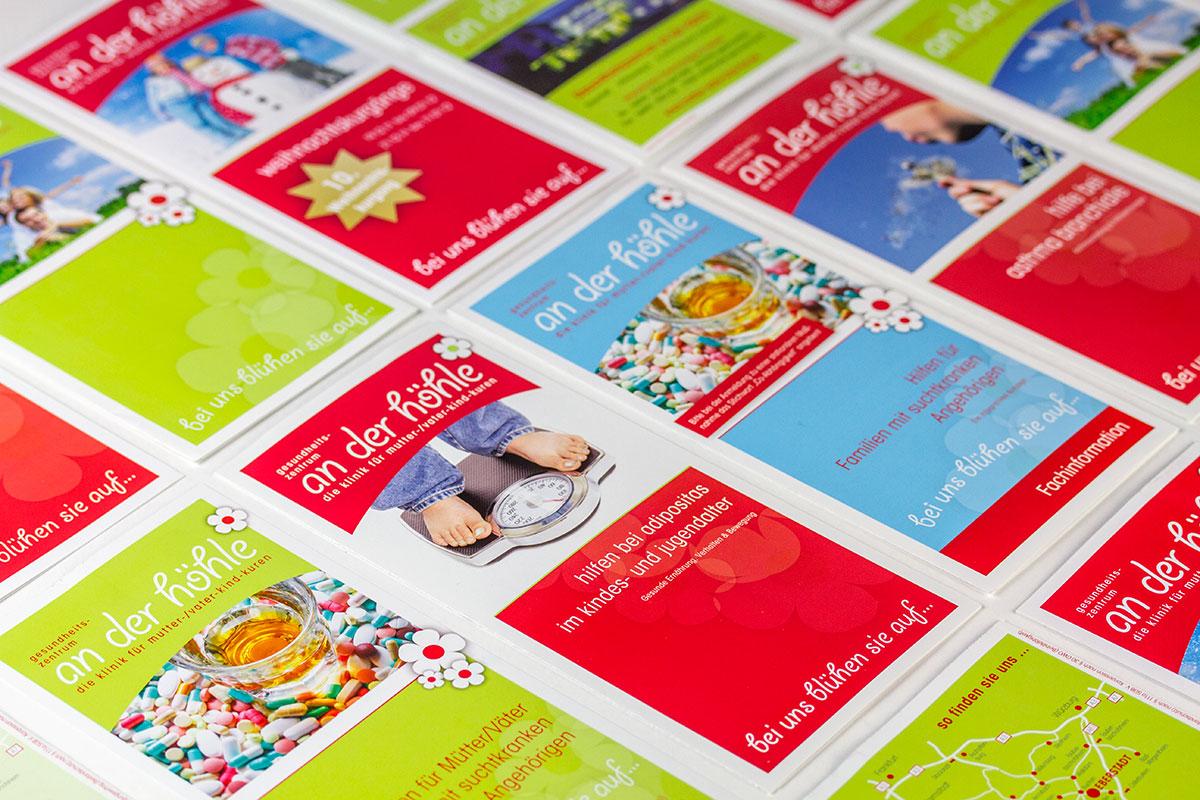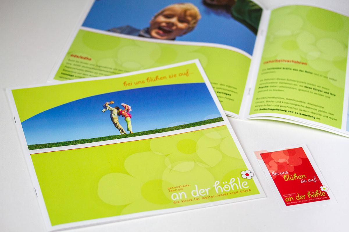 Nach einer grundlegenden Design-Überarbeitung in den Jahren 2007/2008 haben wir in den letzten Jahren eine Vielzahl von Drucksachen für das Gesundheitszentrum an der Höhle erstellen dürfen. Vom Briefbogen über Visitenkarten, Stempel, Beschilderung, Leitsystem, diverse Flyer und alles andere was sich (be)drucken lässt.