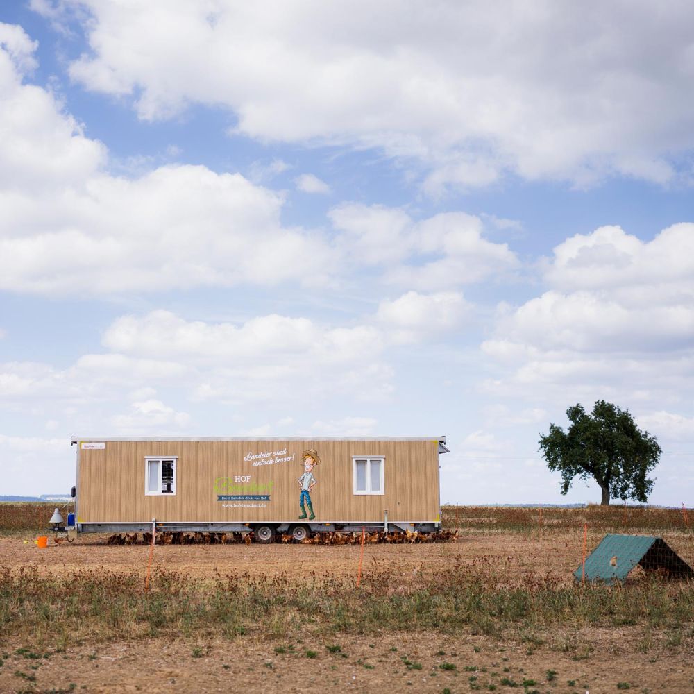 Entspannt gackern die Hühner um den mobilen Hühnerstall am Buchener Aussiedlerhof "Am Weidenbaum".