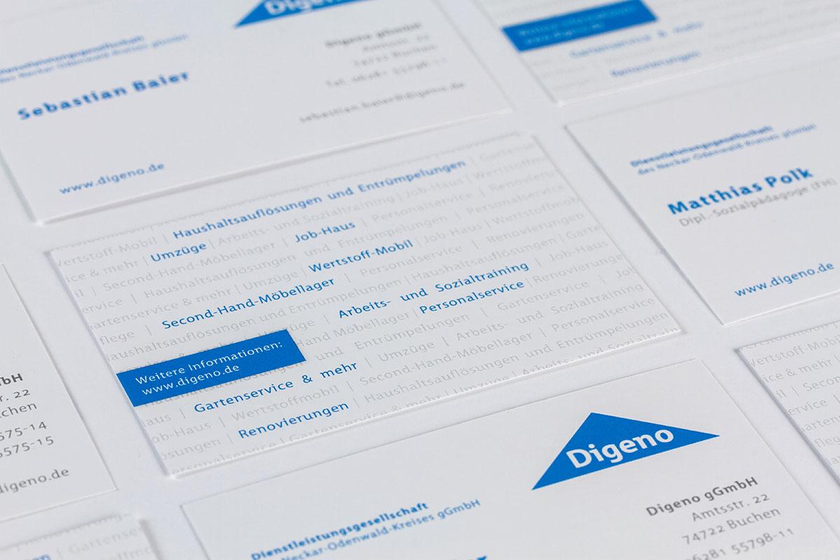 Neben der Neugestaltung des Logos durften wir für die Digeno gGmbH verschiedene Flyer, Visitenkarten, Beschilderungen uvm. erstellen.