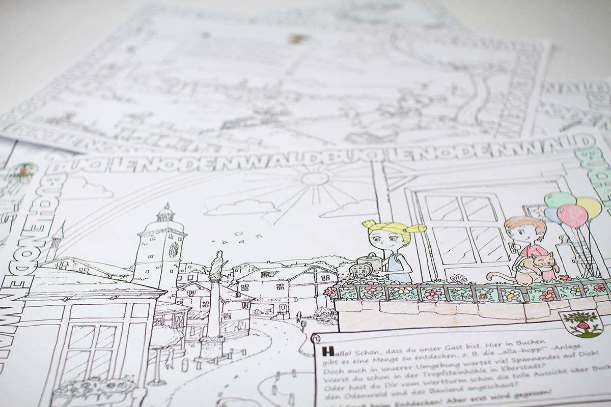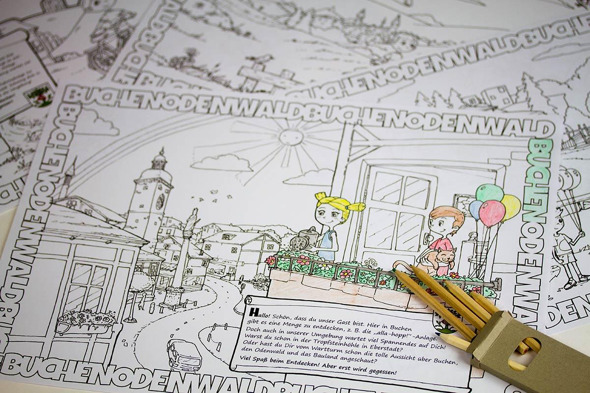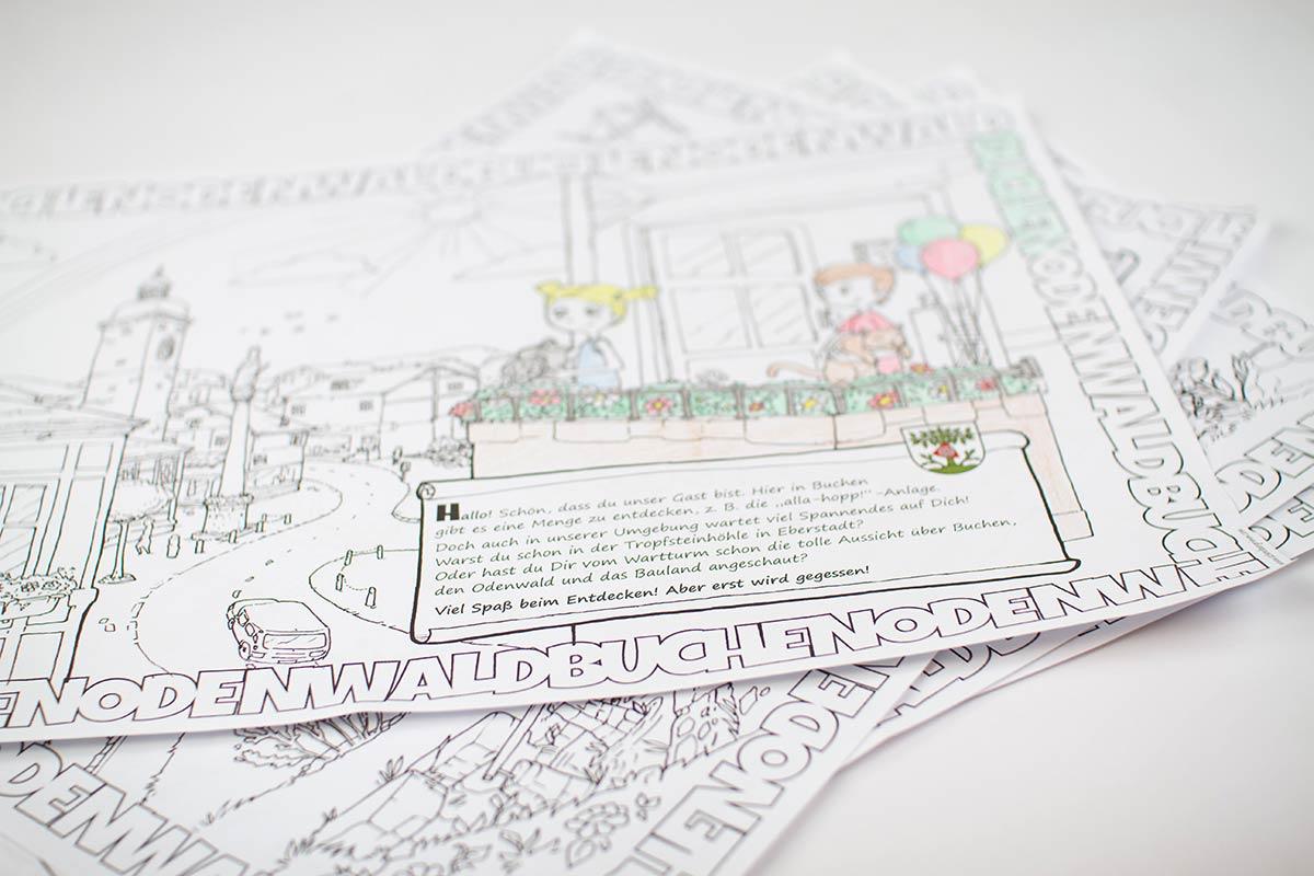 Für die Gastronomen der Stadt Buchen gibt es seit Ende 2016 Platzsets mit kindgerechten Motiven der Stadt. Zum Ausmalen und zum Zeitvertreib beim Warten auf das Essen. Die Gastronomen können die Platzsets kostenfrei im Verkehrsamt anfordern und an die Kinder verteilen.