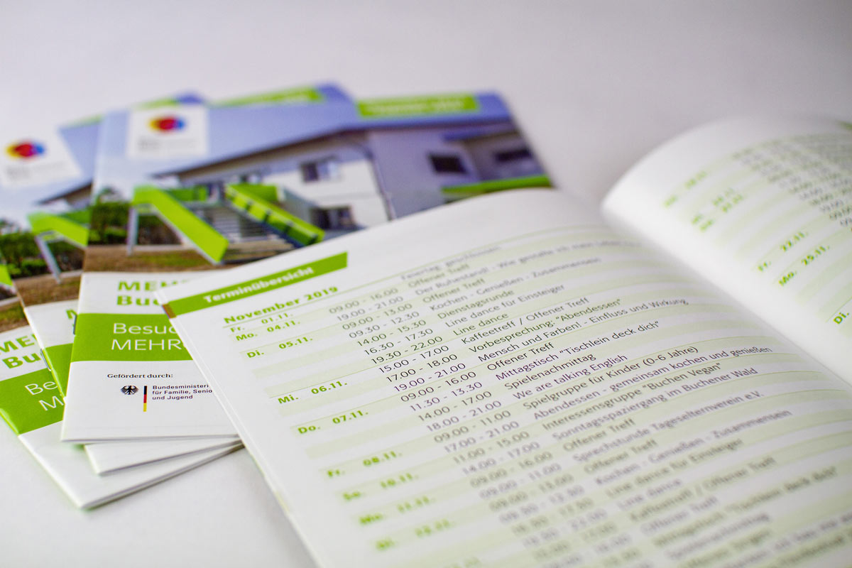 Für das Mehrgenerationenhaus in Buchen durften wir das neue Programmheft erstellen. Ob nette Runden für Jung und Alt, interessante Informationstage, Spielgruppen für Kinder oder das Frauencafé – hier ist für jeden etwas dabei!