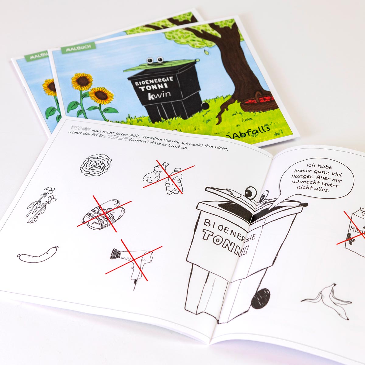 Von uns wurde hierfür ein pfiffiges Malbuch entwickelt, das pädagogisch Alltagsfragen zu Abfallwirtschaft und Klimaschutz behandelt. Das Malbuch erfreut sich großer Beliebtheit bei den Kindern im Neckar-Odenwald-Kreis und erschien mittlerweile in dritter Auflage.