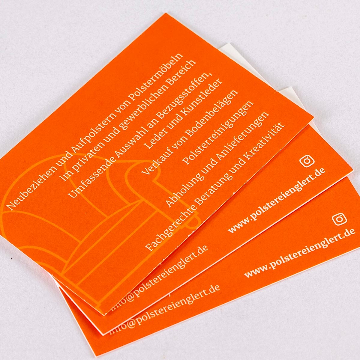 Mit über 30 Jahren Erfahrung ist die Polsterei Englert Ihr Meisterbetrieb für hochwertige Polsterarbeiten im Neckar-Odenwald-Kreis! Wir freuen uns, dass wir nicht nur die Webseite, das Logo und die Beschilderung überarbeitet haben. Zwischenzeitlich sind auch die neuen Visitenkarten für die Polsterei Englert aus Buchen-Hettingen fertig, gedruckt und ausgeliefert.