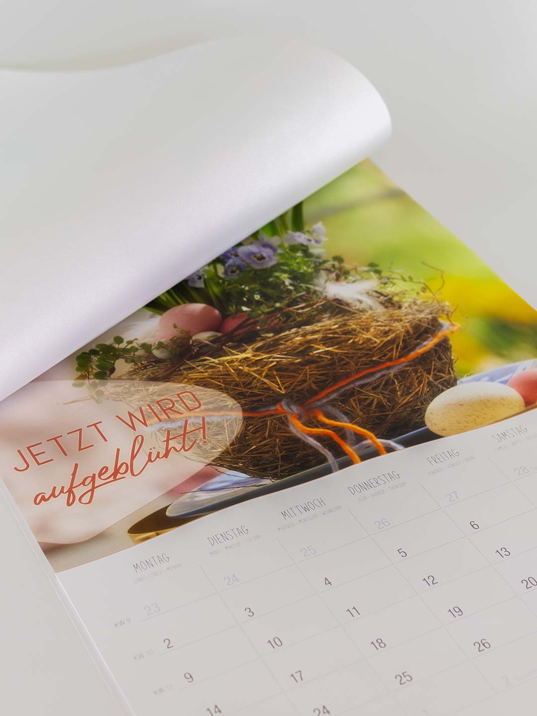 Seit einigen Jahren gestalten und realisieren wir neben Katalogen und anderen Projekten auch die Kalender in verschiedenen Größen und Ausführungen. Im letzten Slide seht ihr schonmal eine kleine Vorschau, welches Motiv im März wartet.