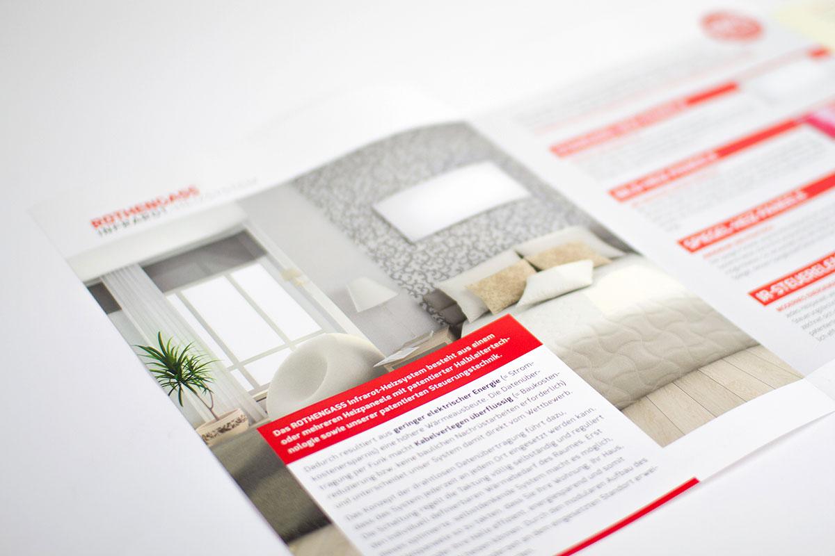 Nach der Erstellung der Webseite galt es auch die Printwerbung zu professionalisieren und einen Flyer sowie Visitenkarten für Rothengass zu entwickeln.