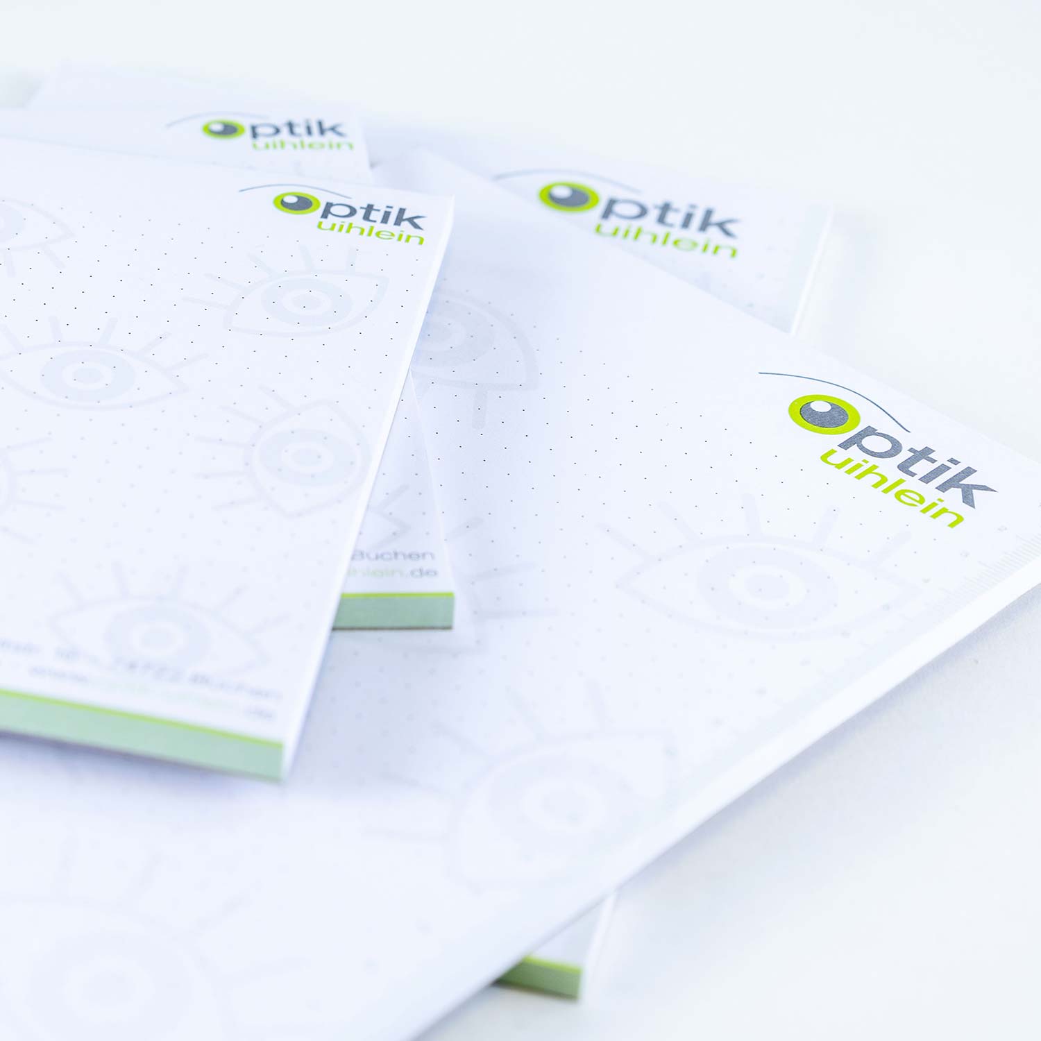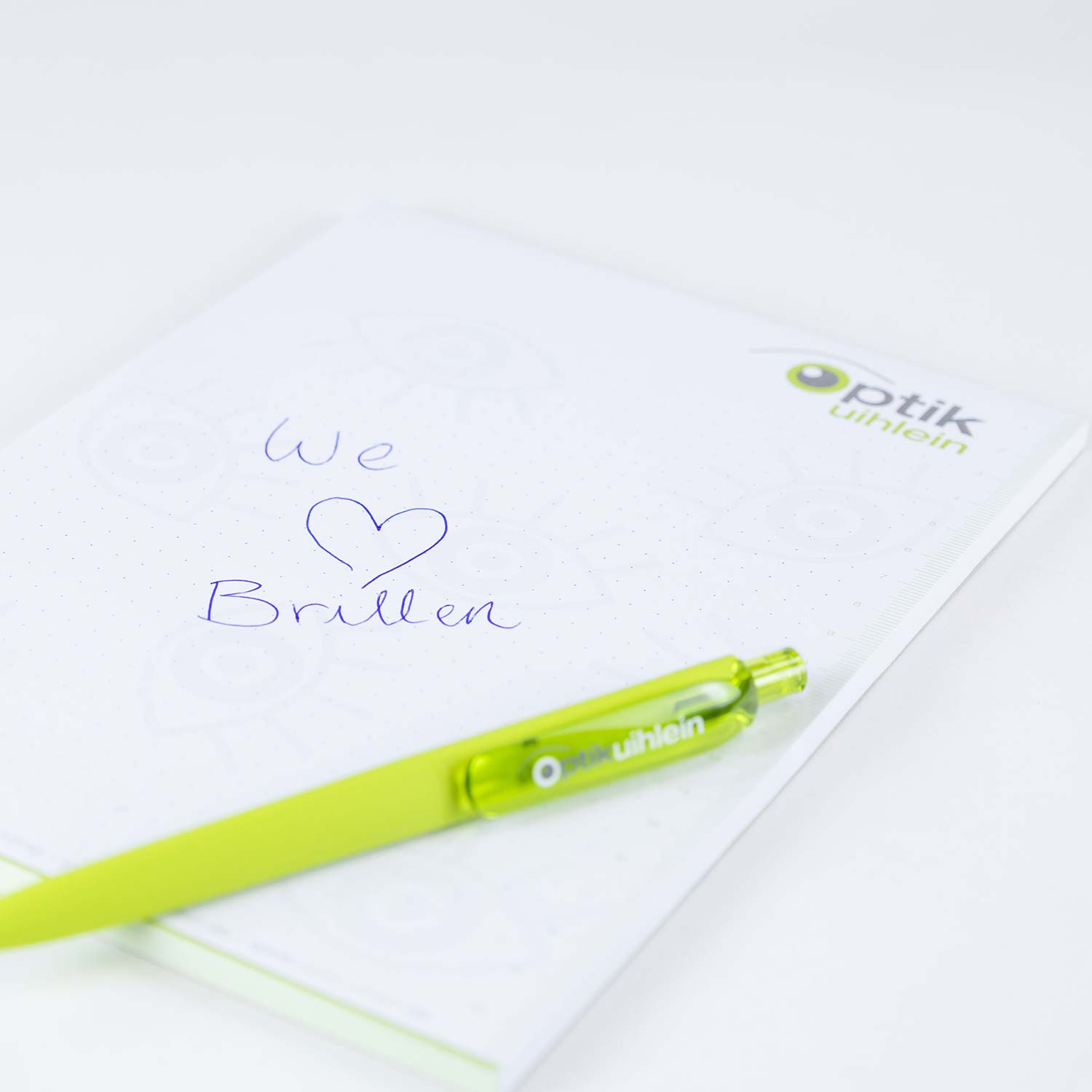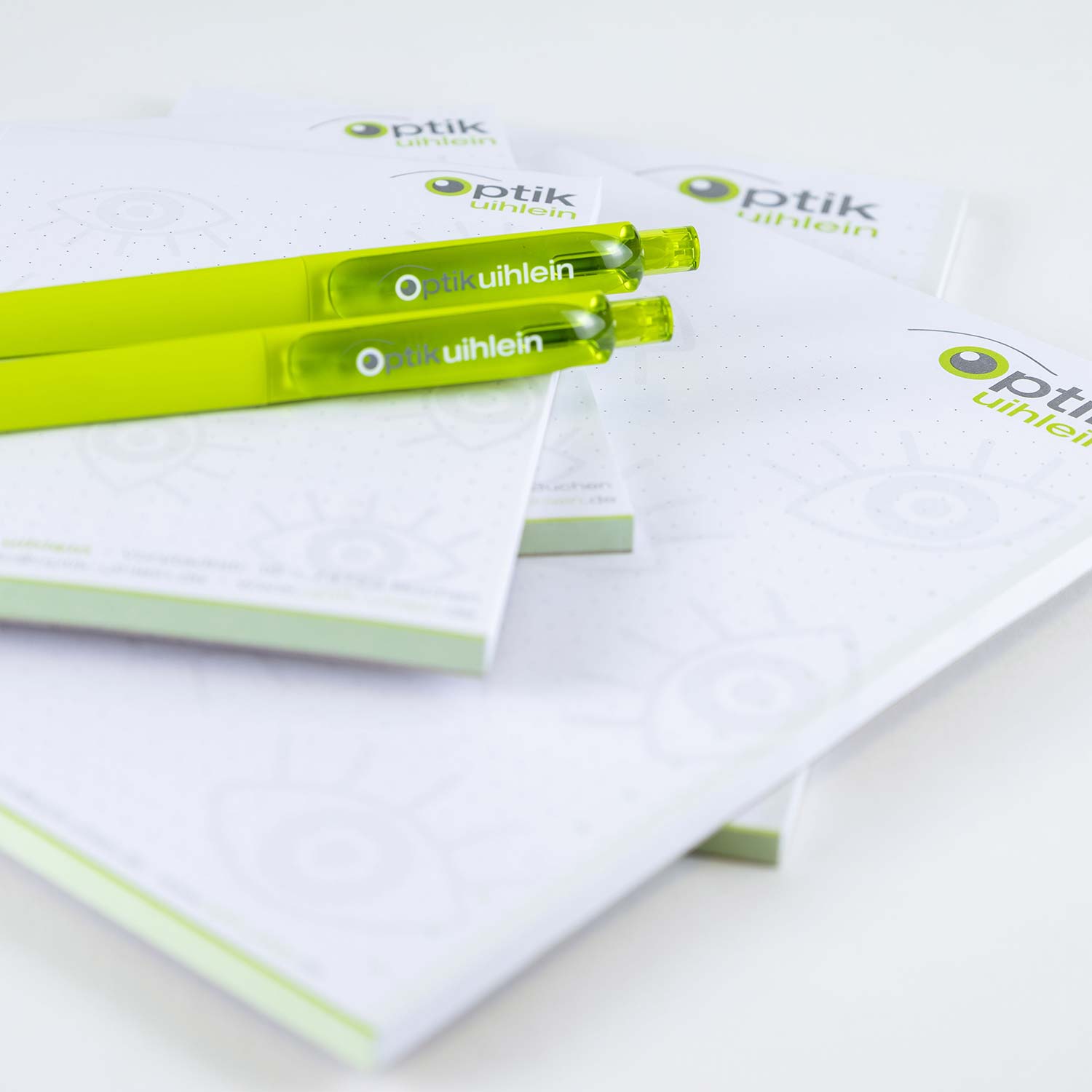Werbung in Grün - Werbemittel für Optik Uihlein