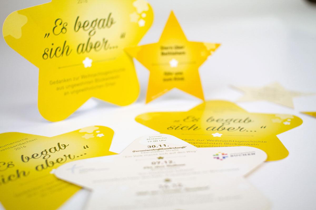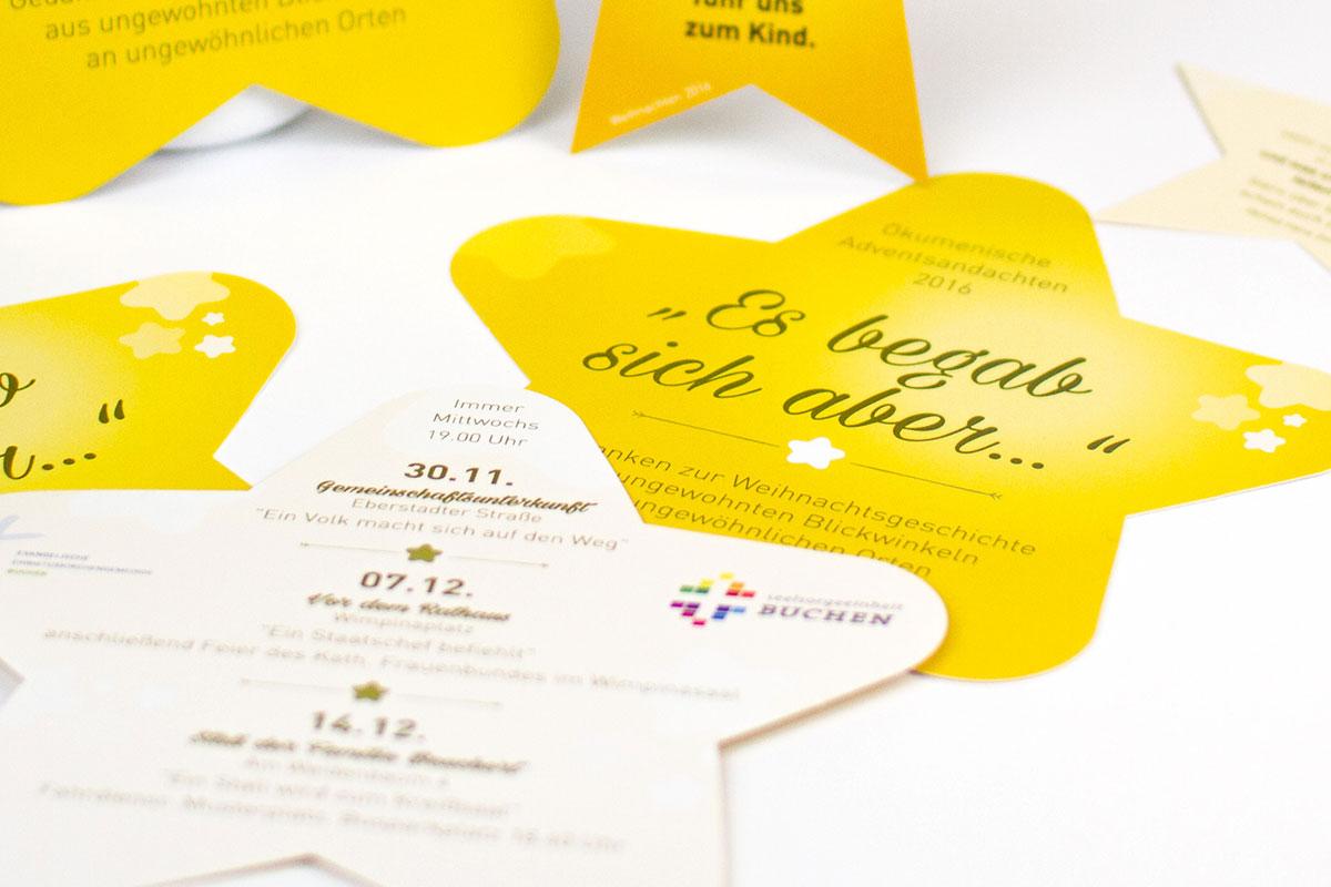 Seit 2016 gestalten wir für die Adventsandachten Flyer, die mit dem Kirchenbrief in den beiden Kirchengemeinden verteilt werden.