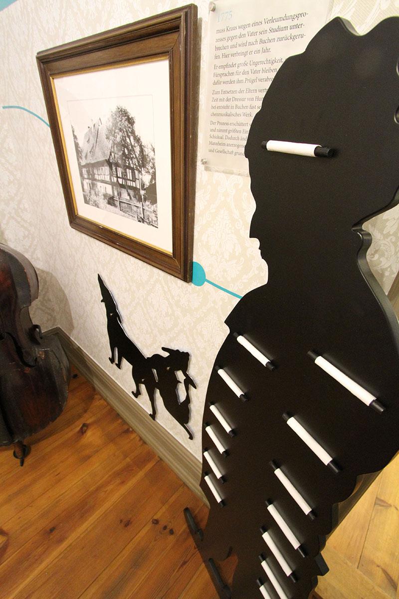Die Ausstellung zeichnet seinen Lebensweg nach, gibt Einblick in die damalige Zeit und ermuntert die Besucher mit dreidimensionalen Figuren, verschiedenen Anfass-Elementen, Musikbeispielen und einem Keyboard - zum selber spielen - zum Mitmachen. In drei Räumen im Museum entwickelte sich gemeinsam mit den Mitgliedern des Vereins eine beachtenswerte Ausstellung rund um Joseph Martin Kraus.