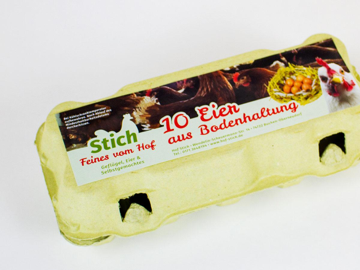 U.a. durften wir die Aufkleber für die Eierkartons des Hofes gestalten.
