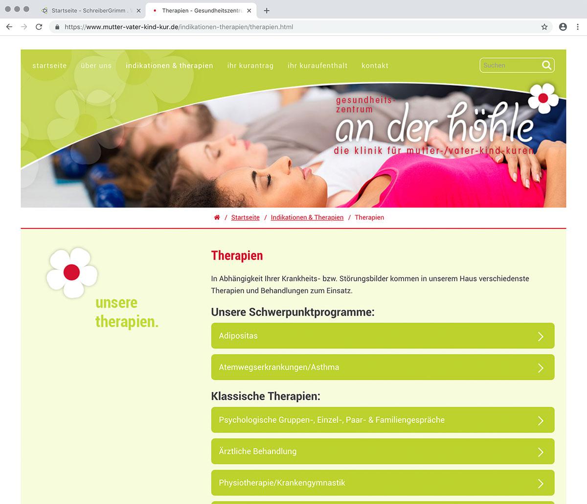 Nach 2010 haben wir 2018 die Webseite des Gesundheitszentrums einem erneuten Relaunch mit responsiver Programmierung verpasst.