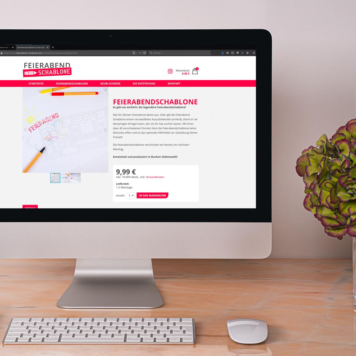 Der Shop wurde mit unserem eigenentwickeltem Shopsystem erstellt. Gefertigt werden die Feierabendschablonen mit unserem eigenen CO2-Laser.