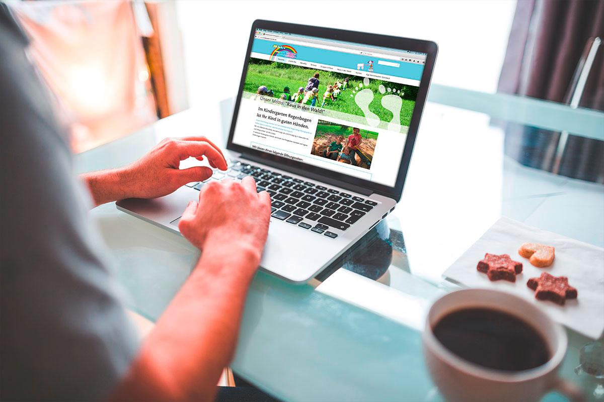 Die von uns entworfene und umgesetzte Webseite informiert Sie ausführlich über alle Angebote der Kindertagesstätte, die Waldpädagogik und anderen Angebote des Kindergartens.