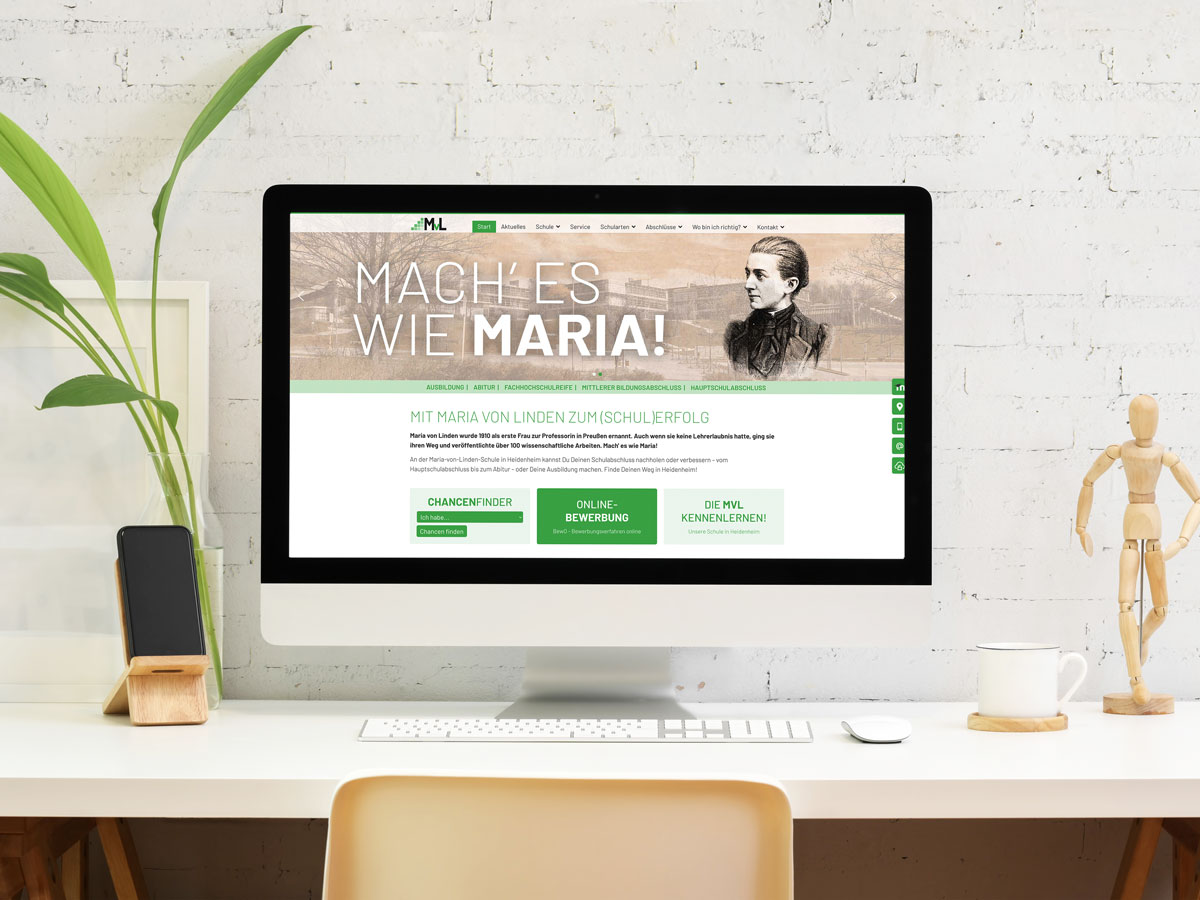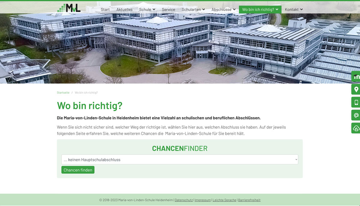 Für die Maria-von-Linden-Schule gestalteten wir die in die Jahre gekommene Webseite neu und haben der Seite ein modernes Äußeres verliehen – inkl. Chancenfinder, damit man möglichst schnell herausfinden kann, welchen Chancen man mit seiner bisherigen Schulbildung hat und was man daraus machen kann.