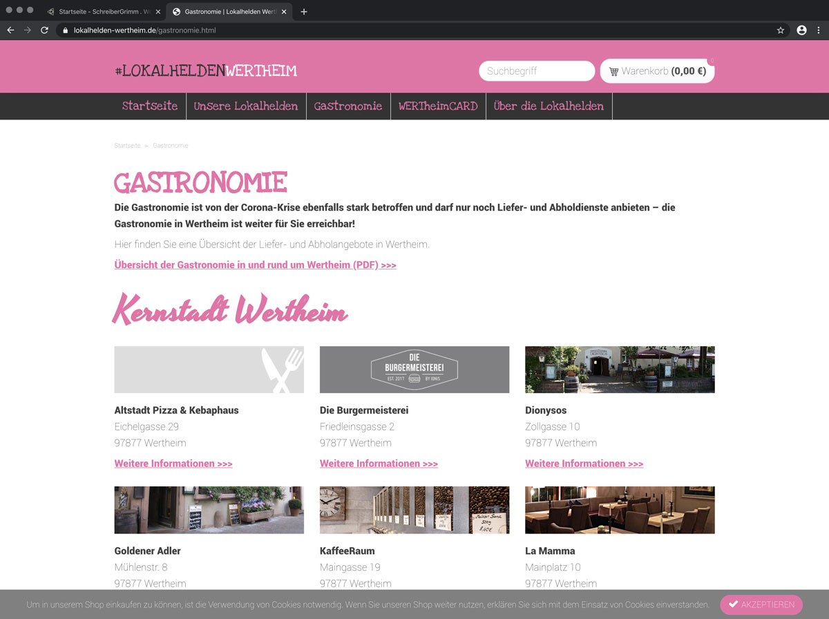 Die Lokalhelden Wertheim sind als "Buy local" Projekt gestartet, jetzt sind sie Dachmarke für den Innenstadthandel und Adresse für den von uns erstellten Online-Shop.