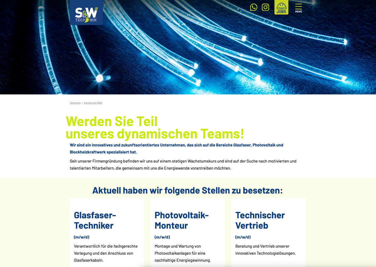 Der Webauftritt der S&W Technik GmbH strahlt dank uns in einem frischen, modernen Design!