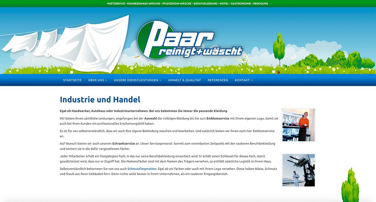 Nach 2011 haben wir 2017 die Webseite der Wäscherei Paar in Walldürn überarbeitet und responsive gestaltet. So präsentiert sich die Wäscherei Paar jetzt auch auf dem Tablet und dem Smartphone in Bestform. Übersichtlich präsentiert die Webseite die wichtigsten Informationen rund um saubere Wäsche, den Service für Geschäftskunden und die Wäscherei für Privatkunden.