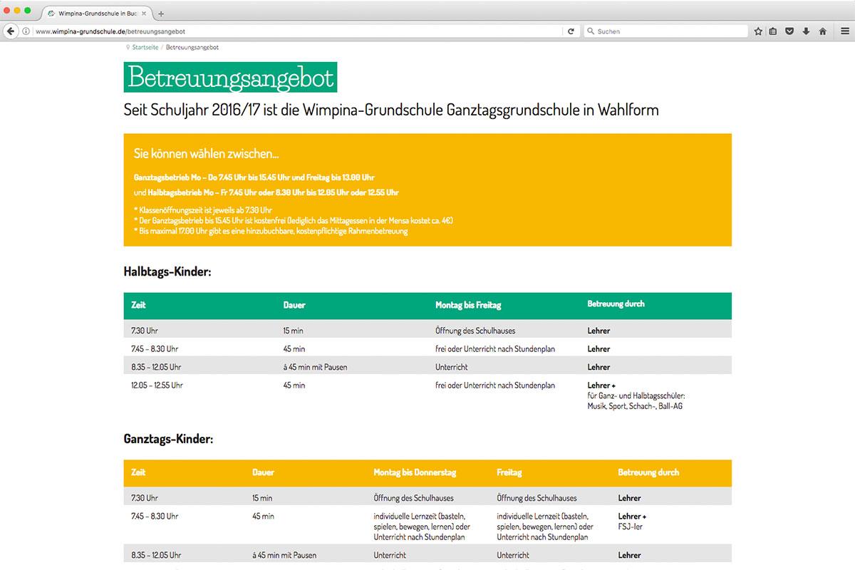 Dass auch Schulen Internetseiten benötigen ist nicht Neues. Um sich erfolgreich von den örtlichen Mitbewerbern abzusetzen, setzt die Wimpina-Grundschule seit 2015 auch auf einen eigenen Internet-Auftritt mit Informationen rund um die Grundschule, ihre Schüler, den Jahreablauf und vieles andere.