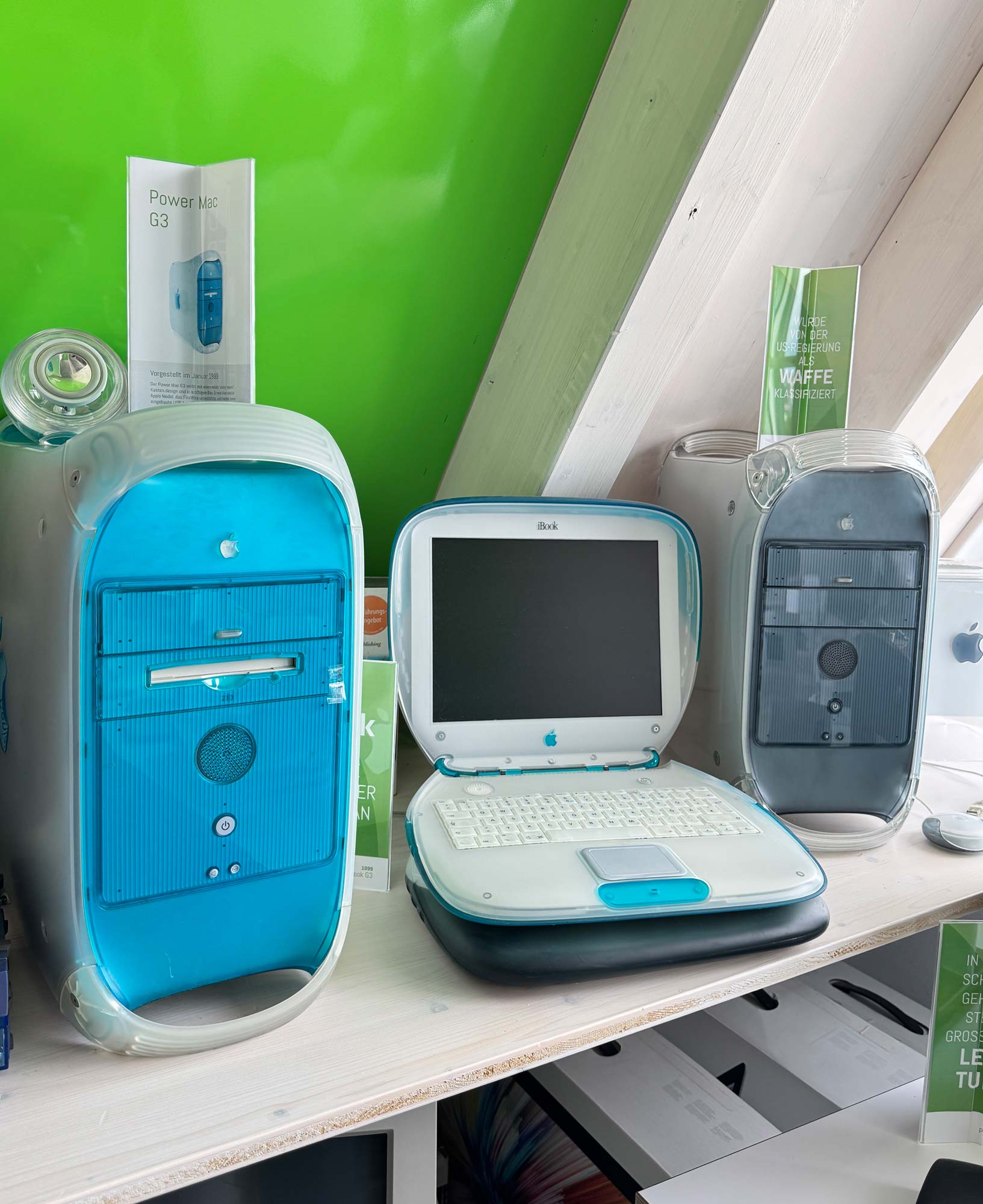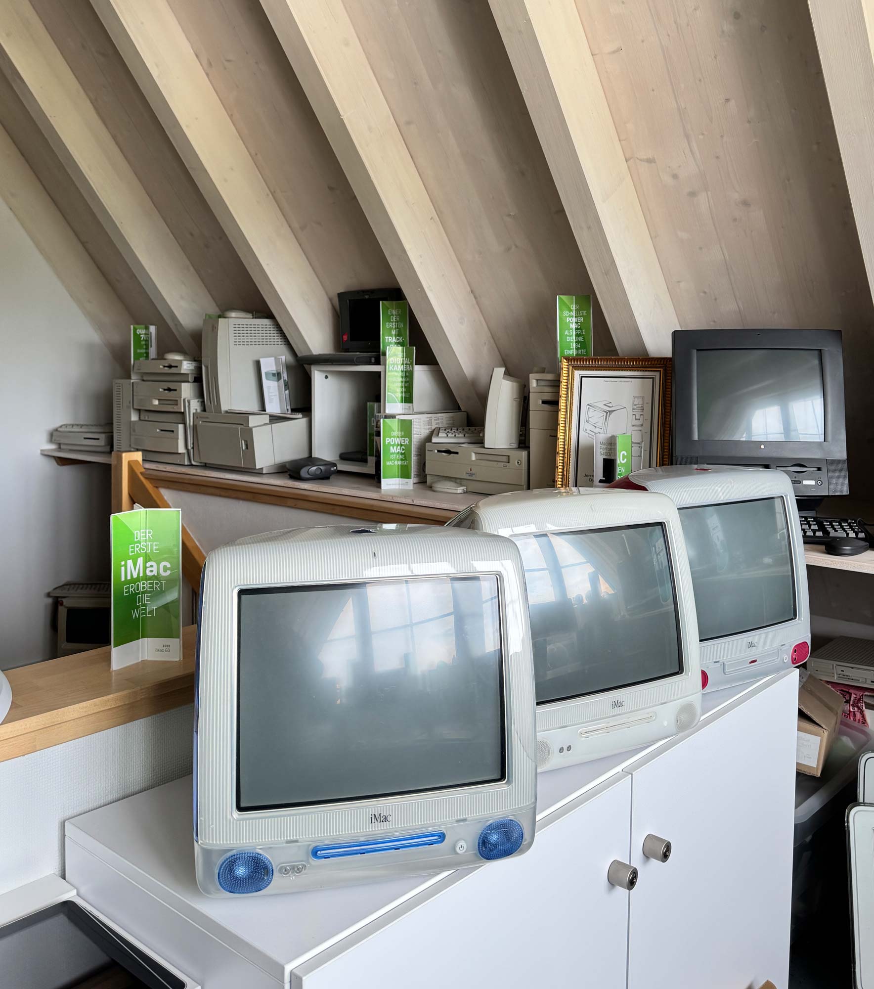 Als bekennende Apple-Liebhaber haben wir in den letzten Jahren eine nicht ganz kleine Anzahl an Apple-Rechnern und Peripherie-Geräten von Apple gesammelt. Jede(r), der sich für die Geschichte und die Produkte von Apple jenseits von iPod und iPhone interessiert, ist herzlich eingeladen, unser Apple-Museum kostenlos zu besichtigen.